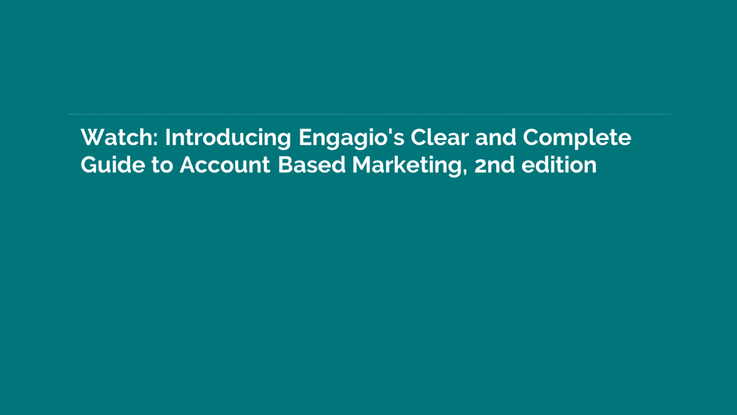 Conclusion An idea whose time has come Winning major deals in B2B markets is never going That’s what Account Based Marketing is all about: At Engagio, we’re completely convinced that ABM to be easy: is the single most important opportunity facing Focusing unprecedented time, budget and resources every B2B company. You’re selling complex solutions into big on select accounts, instead of spreading your organizations. resources equally across all. We hope that this guide has helped you to understand the importance of ABM, the strategic essentials and No single person can simply pull the trigger on Aligning your sales and marketing efforts more the tactical implications. a deal without consulting an interconnected matrix closely than ever before. of people, each with his or her own perspectives, We also hope it’s motivated you to make the leap problems and prejudices. Working hard to understand the needs and to ABM from your current lead-centric demand challenges of your chosen accounts. generation world — maybe starting with a pilot, Your competitors are working just as hard as then ramping up to a full-fledged ABM program. you are to win every piece of business, especially Designing clear, sharp, goal-driven playbooks for the biggest deals in the biggest companies. each account. You’re at the start of something big in your career. But, as a vendor, you’re not simply a victim of these Orchestrating coordinated programs of This is important. forces; you can take concrete, measurable steps communication with the people who matter most. that dramatically increase your chances of winning This is exciting. the biggest, most attractive deals in your market. Measuring and increasing their engagement with you. This is ready now — for you. It’s a new discipline that assembles the right people, Let’s do it. processes and technologies into a well-oiled machine that’s designed to scale the toughest mountains in your world: the biggest, hardest-fought deals that make or break companies like yours.