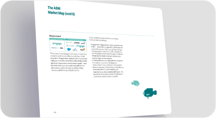 The ABM Market Map (cont’d) Measurement A few points to be aware of when considering Engagement & Sales Insight Journeys & Multi-Touch Attribution measurement technology: • Engagement measurement must go beyond web traffic — web traffic is important, but it’s only one piece of the picture. Getting insight into the type of engagement is key, from content downloads These tools track engagement, score and prioritize to email clicks to meetings and more. It’s all part accounts, and measure the impact of your ABM of building the relationship and closing deals, programs. Engagement measurement is a required thus it’s important to measure. category, since the cornerstone of Marketing is the • It’s essential to put your engagement insights in ability to measure and demonstrate results — and front of your sales team. What good is the metrics for your account-based efforts are measurement if you can’t act on the insights? different to traditional lead-based Marketing. • Account journeys and multi-touch attribution to There’s a shift from quantity to quality. prove value and ROI are increasingly an important piece of a complete ABM stack. The key is to focus on account-specific attribution and metrics, not lead-based analytics. 162