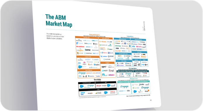 y g o l The ABM o chn I e t V t r M a B Market Map P A The ABM Market Map Data and Insights Interactions Select target accounts, fill contact whitespace, identify insights Specific channels to create 1:1 account-based interactions identifies vendors across Account Data 3rd Party Intent ABM Advertising Web and Content distinct ABM activities. Direct Mail Content Syndication Contact Data SDR / Sales Events Other Insights Orchestration Data Platforms Manage multi-channel account-based plays across multiple personas and departments ABM Automation / Sales Activation Account Planning (supporting) Foundation Measurement The core essentials Track engagement, score and prioritize accounts, and measure the impact of your ABM programs Lead-to-Account MAP Engagement & Sales Insight Journeys & Multi-Touch Attribution CRM Account Based Marketing Market Map Copyright ©2018, Engagio Inc. All rights reserved. Note: You don’t need technology in every category to do ABM. 159