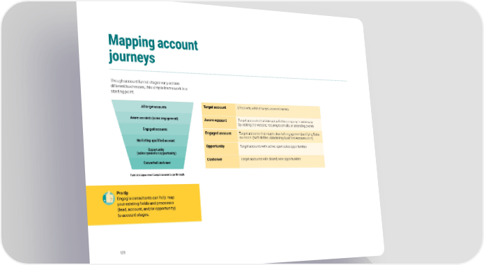 Mapping account journeys Though account funnel stages vary across different businesses, this simple framework is a starting point. All target accounts Target account Effectively, a list of target account names Aware accounts (some engagement) Aware account Target accounts that interact with the company in some way, by visiting the website, replying to emails, or attending events Engaged accounts Engaged account Target accounts that reach a level of engagement justifying Sales outreach. (We’ll define a Marketing Qualified Account soon) Marketing-qualified account Opportunity Target accounts with active, open sales opportunities Opportunity (sales opened an opportunity) Converted customer Customer Target accounts with closed, won opportunities Funnel stages most target accounts go through. Pro tip Engagio consultants can help map your existing fields and processes (lead, account, and/or opportunity) to account stages. 121