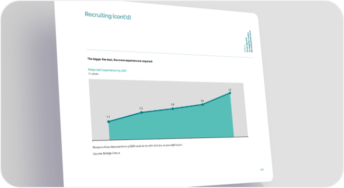 Recruiting (cont’d) eam t t wing and elopmen art 11ov PGrmanaging a sales de The bigger the deal, the more experience is required: Required Experience by ASP In years 1.8 1.5 1.4 1.3 1.1 < $25k < $25-49k < $50-99k < $100-249k < $250k+ Research shows that experience of SDRs tends to rise with deal size, as you might expect Source: Bridge Group 108