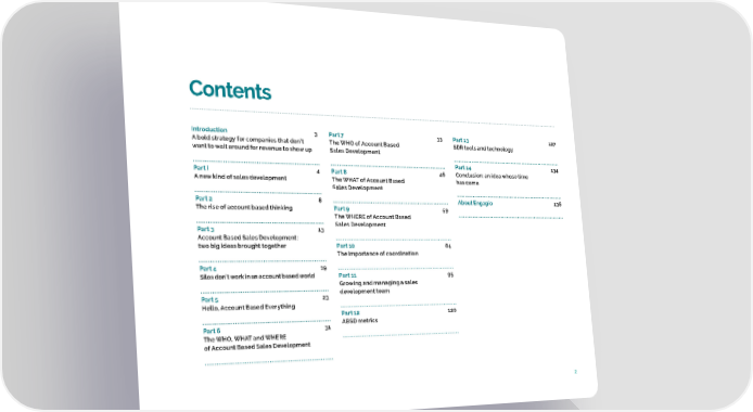 Contents Introduction 3 Part 7 33 Part 13 127 A bold strategy for companies that don’t The WHO of Account Based SDR tools and technology want to wait around for revenue to show up Sales Development Part 14 134 Part I 4 Part 8 46 Conclusion: an idea whose time A new kind of sales development The WHAT of Account Based has come Sales Development Part 2 8 About Engagio 136 The rise of account based thinking Part 9 59 The WHERE of Account Based Sales Development Part 3 13 Account Based Sales Development: two big ideas brought together Part 10 84 The importance of coordination Part 4 19 Silos don’t work in an account based world Part 11 95 Growing and managing a sales development team Part 5 23 Hello, Account Based Everything Part 12 120 ABSD metrics Part 6 31 The WHO, WHAT and WHERE of Account Based Sales Development 2